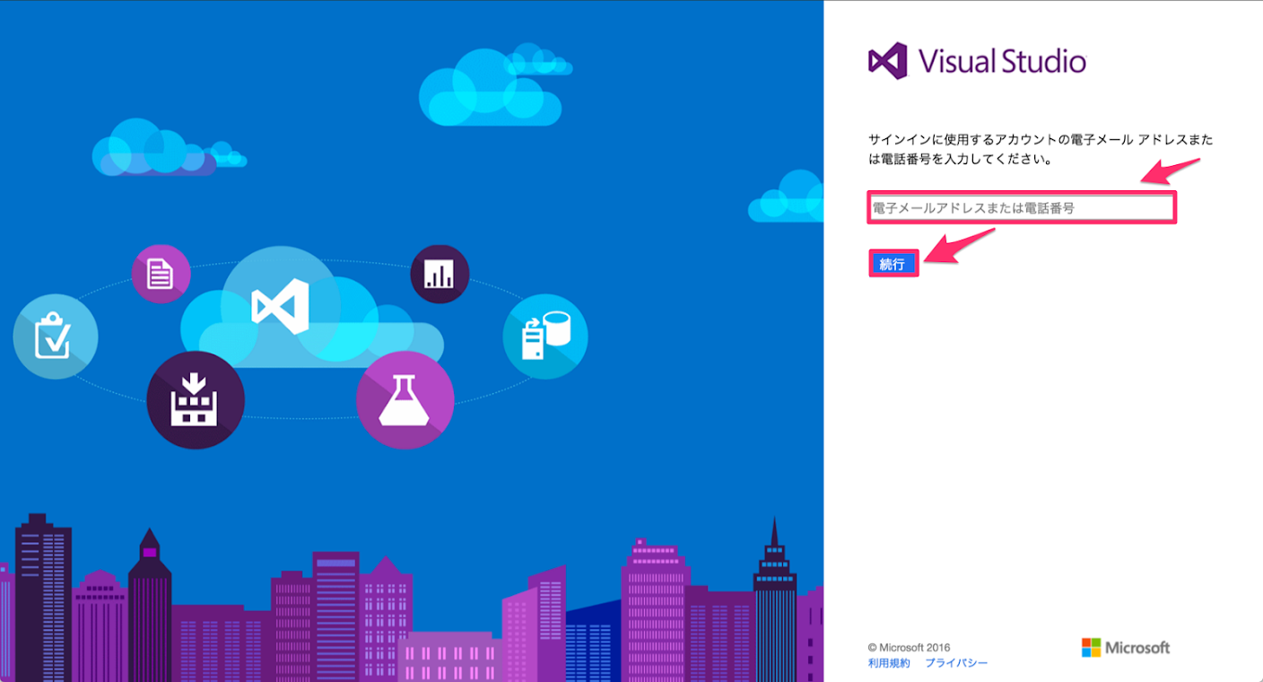 Visual Studio Team Services を使うまでの手順
