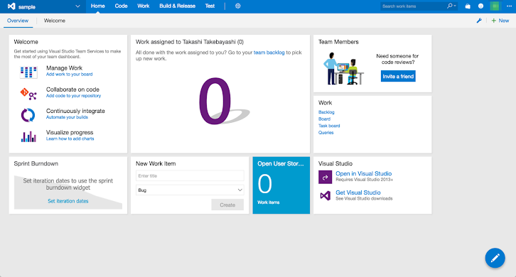 すると、以下のようにVisual Studio Team Services のプロジェクトが作成されます。